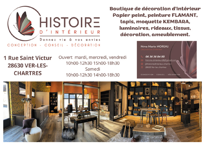 La boutique propose une large sélection de papiers peints, peintures Flamant, tissus, rideaux, luminaires, sols, tapis, moquettes, objets de décoration et mobilier.