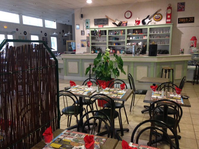Un restaurant lumineux, à la déco « route 66 » dans un cadre verdoyant, vous propose des formules.